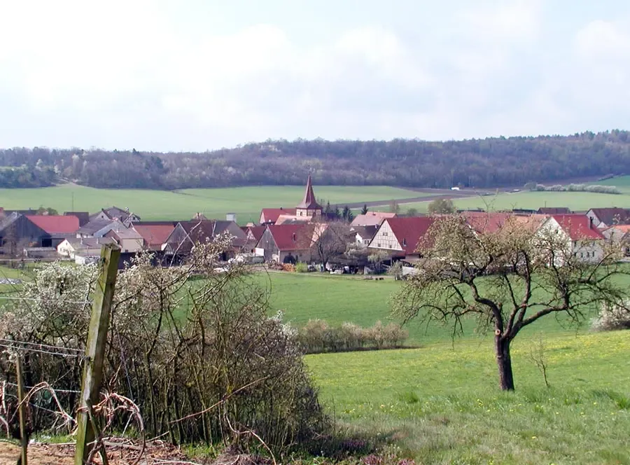 gehört zusammen mit Rüdisbronn, Herbolzheim und Krautostheim zu den altfränkischen Osing-Gemeinden. Der Osing ist ein Höhenrücken, ca. 260 ha groß, dessen Fluren und Wälder alle zehn Jahre, zuletzt 2014, unter den vier Orten verlost werden. Dieser Brauch stammt noch aus germanischer Zeit und hat sich bis heute gehalten. Das älteste Bauwerk ist die typisch fränkische Wehrkirche (Marienkirche 15. Jh./ um 1700).