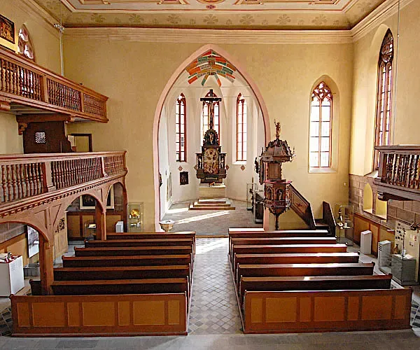 Höhepunkte der Ausstattung sind die Kanzel von Georg Brenck (1622) und die Steinmeyer-Orgel – Kunst und Musik prägen bis heute den evangelischen Gottesdienst.